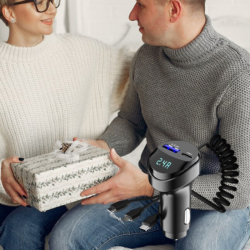 Pxcxu Fast Charging Car Charger with 3-in-1 Charging Cable